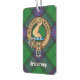 Clan Armstrong crest badge surrounded by a strap and buckle over tartan background. Custom text on both sides.