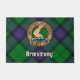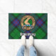 Clan Armstrong crest badge surrounded by a strap and buckle over tartan background. Custom text.