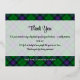 Clan Armstrong crest badge surrounded by a strap and buckle over tartan background. Foil printed thank you card. Custom text.