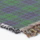 Colourful custom fringe end throw blanket made with graphics of the green, and blue traditional Scottish clan Austin tartan plaid pattern. White old world style text can be personalised to read what you want. Lovely gift idea for anyone.