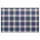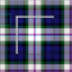 Fabric with the Clan Baird dress tartan, a traditional Scottish plaid pattern in royal blue and white, with bright purple, green, and black accents. Pattern repeats every 4". Special order larger or smaller scale via https://plaidwerx.com/contact.htm