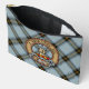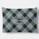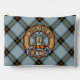 Clan Bell crest badge surrounded by a strap and buckle over tartan background. Custom text on both sides.