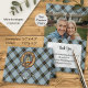 Clan Bell crest badge surrounded by a strap and buckle over tartan background. Thank you card. Custom photograph. Custom text fields on both sides.