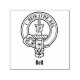 Clan Bell crest badge surrounded by a strap and buckle. Custom text.