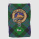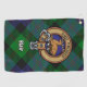 Clan Blair crest badge surrounded by a strap and buckle over tartan background. Custom text.