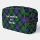Clan Blair crest badge surrounded by a strap and buckle over tartan background. Custom text on both sides.