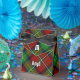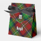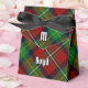 Clan Boyd crest badge surrounded by a strap and buckle over tartan. Custom text and monogram.