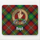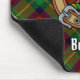 Clan Boyd crest badge surrounded by a strap and buckle over tartan background. Custom text.