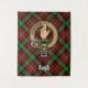 Clan Boyd crest badge surrounded by a strap and buckle over tartan background. Custom text.