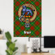 Clan Blue crest badge surrounded by a strap and buckle over hunting tartan background. Custom text.