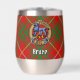 Clan Bruce crest badge surrounded by a strap and buckle over tartan background. Custom text on both sides.
