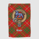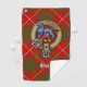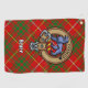Clan Bruce crest badge surrounded by a strap and buckle over tartan background. Custom text.