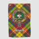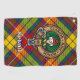 Buchanan crest badge surrounded by a strap and buckle over clan tartan background. Custom text.