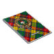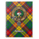Clan Buchanan crest badge surrounded by a strap and buckle over tartan background. Custom text.