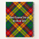 Clan Buchanan crest badge surrounded by a strap and buckle over tartan background. Custom text on both sides.