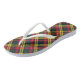 Flip flops with the Clan Buchanan, a classic Scottish plaid pattern in bright yellow, red, and forest green, with black and white accents.