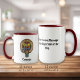 Clan Carnegie crest badge surrounded by a strap and buckle over dress tartan background. Custom text on both sides.