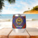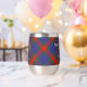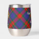 Clan Carnegie crest badge surrounded by a strap and buckle over tartan background. Custom text on both sides.