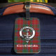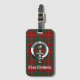 Stylish luggage tag features Scottish Clan Chisholm crest badge on tartan background