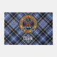 Clan Clark crest badge surrounded by a strap and buckle over tartan background. Custom text.