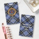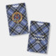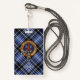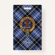 Clan Clark crest badge surrounded by a strap and buckle over tartan background. Custom text.