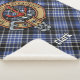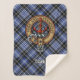 Clan Clark crest badge surrounded by a strap and buckle over tartan background. Custom text.