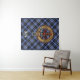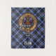 Clan Clark crest badge surrounded by a strap and buckle over tartan background. Custom text.