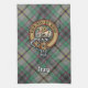 Clan Craig crest badge surrounded by a strap and buckle over tartan background. Custom text.