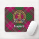 Clan Crawford crest badge surrounded by a strap and buckle over tartan background. Custom text.