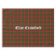 Festive tablecloth features the tartan plaid of Clan Crawford with text overlay. Available in a variety of sizes and fabrics.