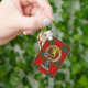 Clan Cumming crest badge surrounded by a strap and buckle over tartan background. Custom text on both sides.