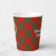 Clan Cumming crest badge surrounded by a strap and buckle over tartan background. Custom text on both sides.