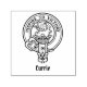 Clan Currie lion crest badge surrounded by a strap and buckle. Custom text.