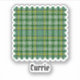 Clan Currie traditional tartan sample swatch with modern colours. Custom text.