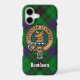 Clan Davidson crest badge surrounded by a strap and buckle over tartan background. Custom text.
