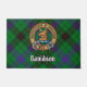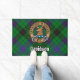 Clan Davidson crest badge surrounded by a strap and buckle over tartan background. Custom text.