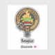Clan Douglas crest badge surrounded by a strap and buckle over tartan background. Custom text.