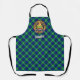 Clan Douglas crest badge surrounded by a strap and buckle over tartan background. Custom text.