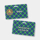 Clan Douglas crest badge surrounded by a strap and buckle over tartan background. Custom text on both sides.