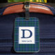 Luggage tag with the Clan Douglas tartan, dated to 1819. Traditional Scottish plaid pattern in bright modern shades of navy blue and forest green with bright blue, black and white highlights. Personalise with your initial and surname on a light coloured plate for easy legibility.