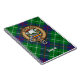 Clan Duncan crest badge surrounded by a strap and buckle over tartan background. Custom text.