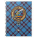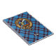 Clan Elliot crest badge surrounded by a strap and buckle over ancient tartan background. Custom text.