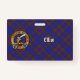 Clan Elliot crest badge surrounded by a strap and buckle over modern tartan background. Custom text on both sides.