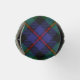 Clan Farquharson crest badge surrounded by a strap and buckle over tartan background. Custom text.