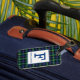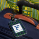 Luggage tag with the tartan for Clan Farquharson, dated to 1774. Traditional Scottish plaid pattern in bright blue and green, with black, red and yellow highlights. Personalise with your initial and surname on a light coloured plate for easy legibility.