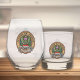Clan Ferguson crest badge surrounded by a strap and buckle over tartan background. Custom text on both sides.