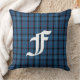 Stylish plaid pillow done in the colourful blue clan Fitzgerald tartan plaid pattern. A large white one letter monogram is ready to personalise to suit your needs. Handsome accent throw pillow with a classic pattern and monogram.