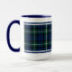 Coffee mug with the family tartan for Clan Forbes, a traditional Scottish plaid pattern in forest green and royal blue with black and white accents. Choose from two sizes and five styles.