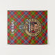 Clan Forrester crest badge surrounded by a strap and buckle over tartan background. Custom text.