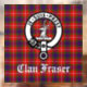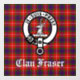 Stylish window cling features Scottish Clan Fraser Crest badge and customisable text on tartan background